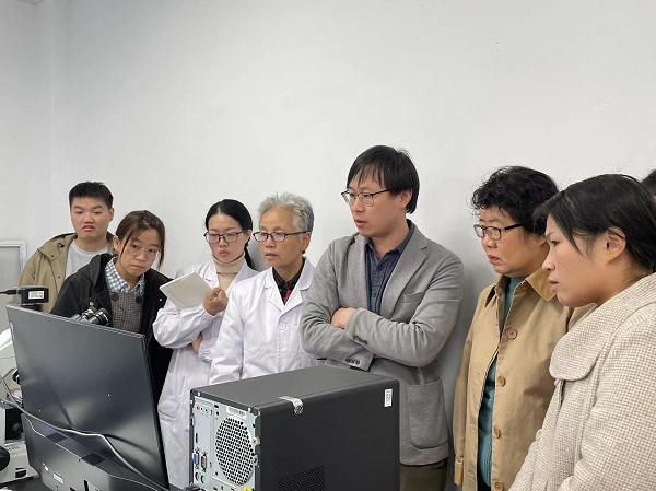 培训会上,显微镜软件工程师施路家向大家介绍了显微镜的安装方法、基本原理、参数设置、制样的基本方法,以及日常使用时的注意事项、常见问题及解决方法。施路家还在教师使用的显微镜配套软件中插入了组织胚胎学、病理学等切片图片,方便教师们在实际教学中操作演示。