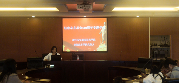 10月11日,智能技术学院教师党支部在第一会议室召开了“纪念辛亥革命110周年,弘扬爱国主义精神”主题党日活动。支部全体党员参加了此次党日活动,活动由智能技术学院党总支副书记余泓主持。