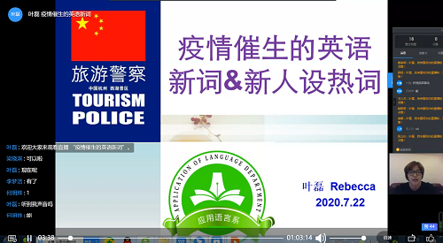 已经开展过的7月的教学主题为“疫情催生的英语新词 & 新人设热词”,由叶磊老师负责。课上叶老师带领大家学习了篇章节选《The Rules of Coronaspeak》(“新冠新语”的造词门道),并了解疫情催生的四类新人设。8月的教学主题为“Interesting Words in News Reports”,由俞乔老师主持,联系七、八月份的相关热点新闻,带领大家读新闻、学生词并展开思考和讨论。累计参与7月、8月两次教学实践的警官人数达136人,教学反馈良好。警官们纷纷表示两次学习经历受益匪浅,在热点实事的分享学习中积累了新词、开拓了视野,且提高了英语表达能力。老师们也表示这样的教学实践机会很有意义,有效地提升了自己的社会服务能力。