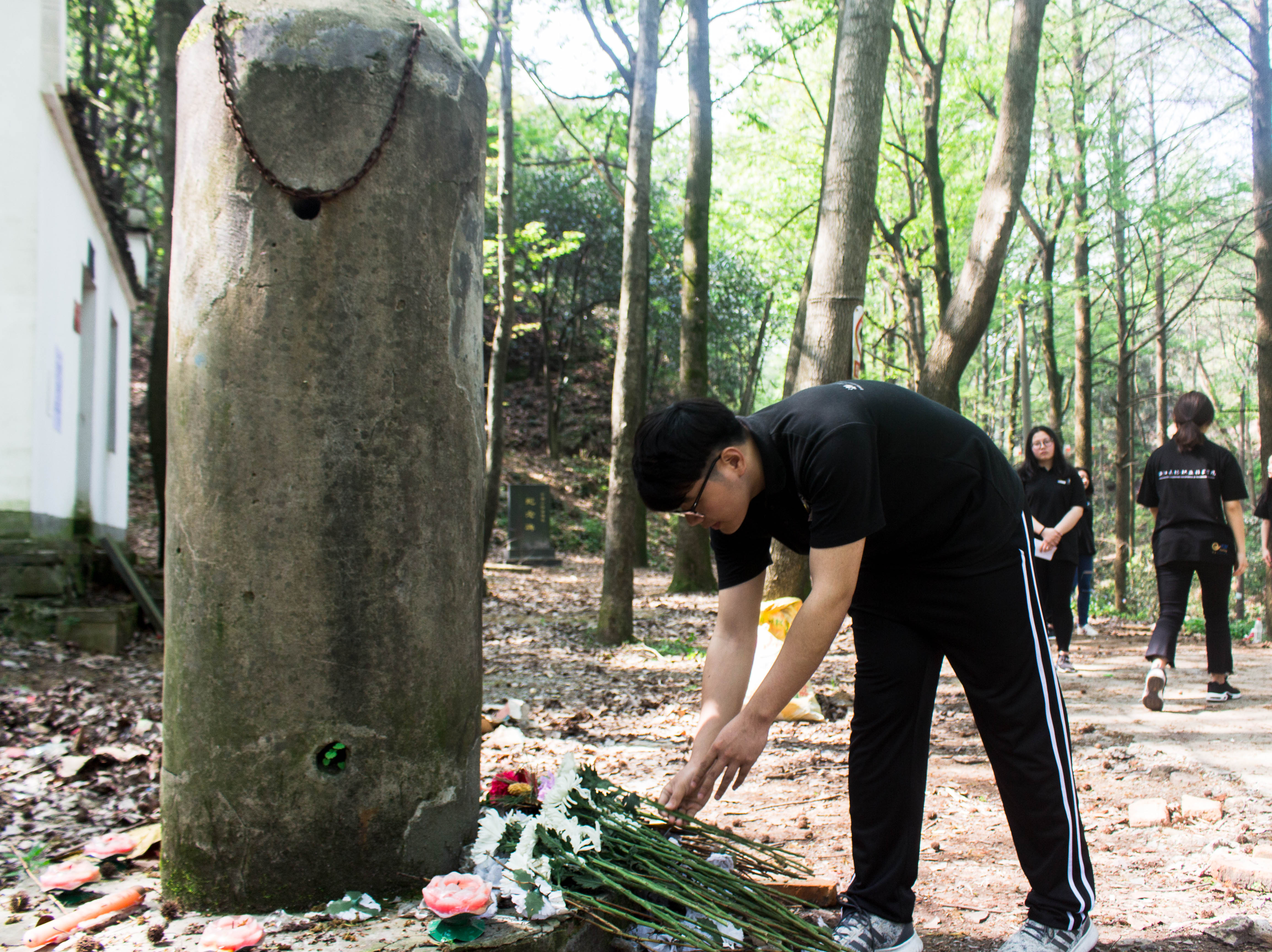 在遗址纪念碑前,学生干部们先是为遗址周围清扫垃圾,然后由学生代表在“勿忘国耻”纪念地前朗诵了祭文,并向为了实现最广大人民群众的根本利益,不惜舍身取义的无名英雄们敬献菊花并默哀,以表达对逝者深深地敬仰和缅怀之情。