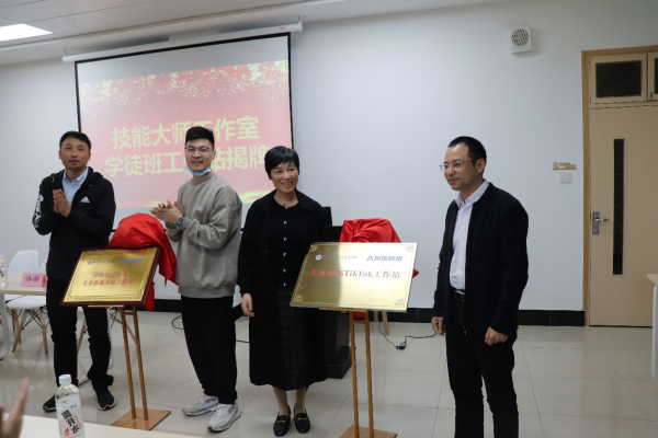 随后,王珍、吴少俊、许新、金开共同为学徒班工作站和企业大师工作室进行了揭牌。最后,学校、企业和学生代表共同签署了学徒班三方协议。