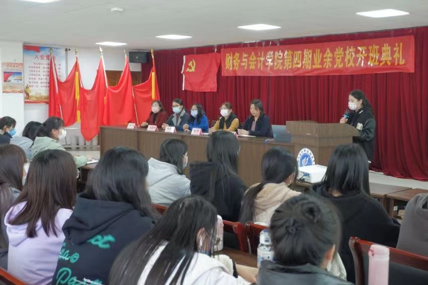 3月13日,财务与会计学院党总支在党员之家召开第四期业余党校开班典礼。学院党总支书记杨军,本期业余党校授课课教师张琴琴、徐婷婷等及87名学员参加了此次会议。