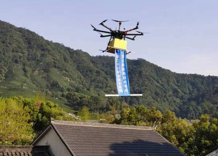 3月15日下午,学校无人机应用技术专业组织师生前往西湖龙井茶产区梅家坞开展无人机空中智慧物流项目的实践教学。智能技术学院副院长张晓燕,无人机应用技术教研室主任朱强,专任教师贺双旭、侯卫东、李向东带领学生参加了此次实践教学课。