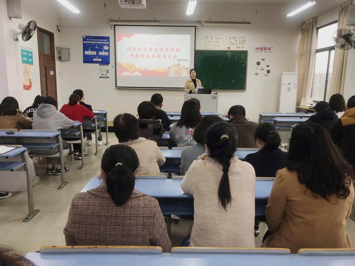 为进一步推进学院师德师风建设工作,提升教职工思想政治素质和职业素养,计算机与信息技术学院于3月22日开展了师德师风建设专题会议。本次会议由学院党总支书记徐静主持,全体教师出席,外聘教师同步参加线上会议。