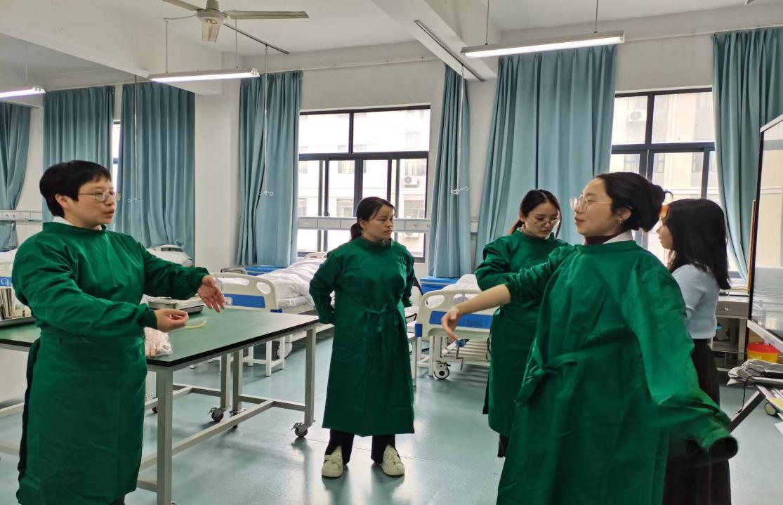 近日,护理与健康学院副院长应佳盈及基础护理教研室全体教师一起开展了演练,互相交流学习促进步。在实训楼北307实训室和实训楼北312实训室,分别示范了如何穿脱隔离衣和“四人搬运法”操作流程。过程中,老师们结合实操,讨论如何通过护理操作技能考察学生的临床护理技能和应变能力,以进一步提高同学们的临床思维及团队合作能力。