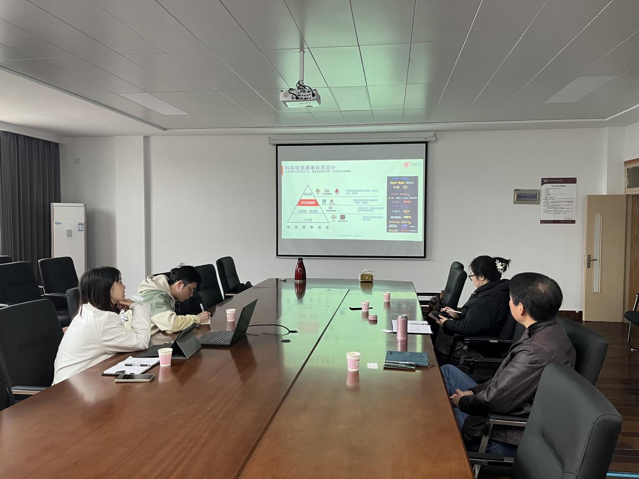 本次考察交流由计算机与信息技术学院主办。三方就校企合作、电竞专业人才培养等方面展开了深入交流和探讨。萧山电协代表介绍了该协会在电子行业发展和创新方面的探索和成果,强调了校企合作的重要意义和优势及电竞目前的人才需求。网易代表则分享了公司的最新技术和产品,鼓励学生在电竞领域跟随潮流,开展更多探索和实践。