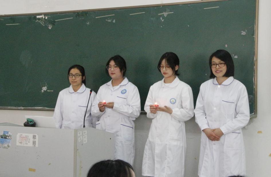 最后,张泱、应佳盈共同宣布本次“护理与健康学院护理文化月暨第二届护士节”正式启动,并点燃了包含美好祝福的心形传承蜡烛。两位学生代表从张泱、应佳盈的手中接过蕴含无限鼓励与美好希冀的小蜡烛,坚定信心继承南丁格尔精神,争做优秀护理人才。