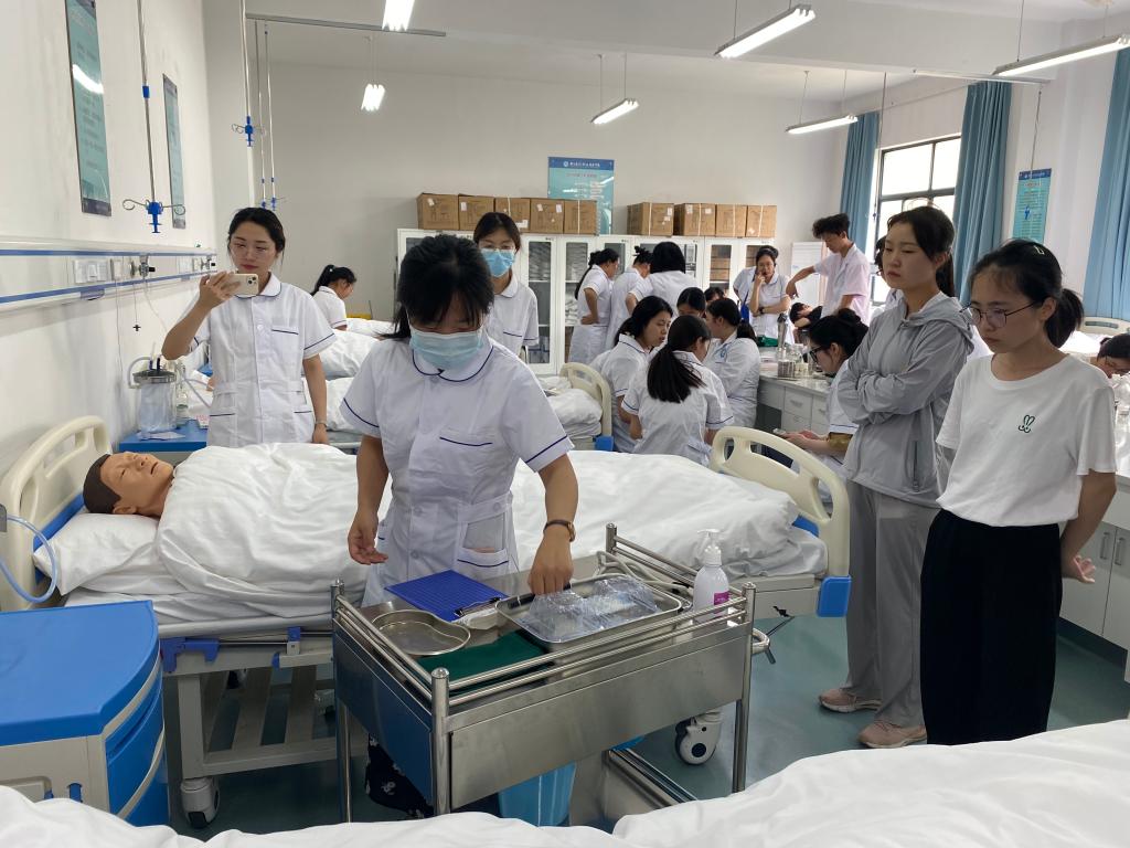 为做好本学期护理专业学生实践学习周培训工作,强化学生基础护理操作技能,近日,护理与健康学院基础护理教研室在实训楼北305和北307实训室开展培训演练。教研室的许优君、徐誉珍、吴一帆等10位老师为培训指导老师。