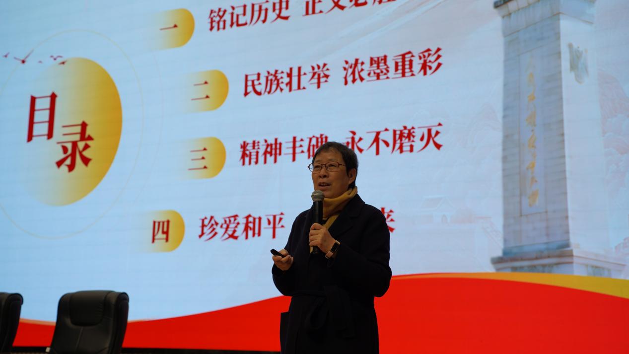 开班仪式结束后,王华以“弘扬伟大抗战精神·汇聚民族复兴力量”为题,为学员们讲授培训第一课。课堂上,王华通过历史图片、文献资料与典型案例,带领学员们回顾了抗日战争从局部抗战到全面胜利的壮阔历程,深刻阐释了“天下兴亡、匹夫有责的爱国情怀,视死如归、宁死不屈的民族气节,不畏强暴、血战到底的英雄气概,百折不挠、坚韧不拔的必胜信念”的伟大抗战精神。